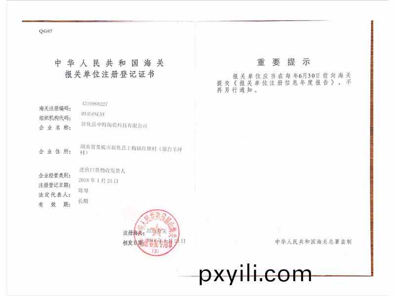 海關(guān)(guan)註(zhu)冊(cè)登(deng)記證(zheng)書